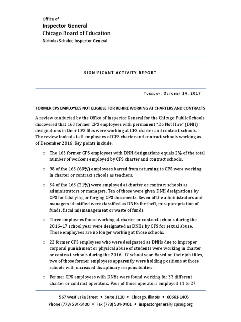 Former CPS Employees Not Eligible For Rehire Working at Charters and